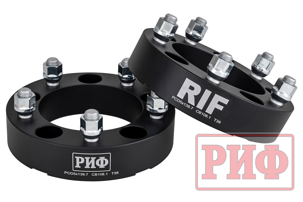 Проставки колёсные РИФ 5x139,7, ЦО 108 мм, толщина 38 мм, 14x1,5 (2 шт.)