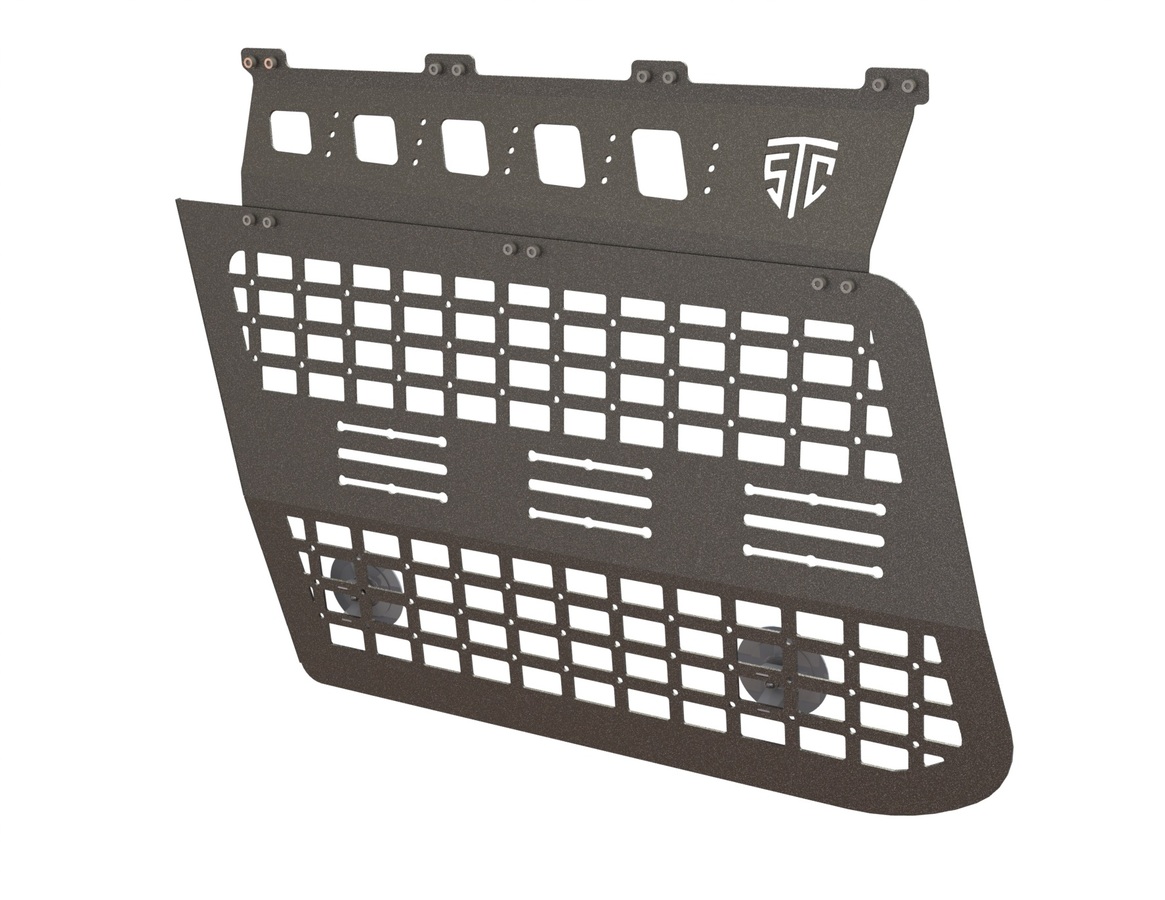 Панель на заднее левое стекло, с ячейками, предназначена для крепления грузов и канистр для воды/ топлива.