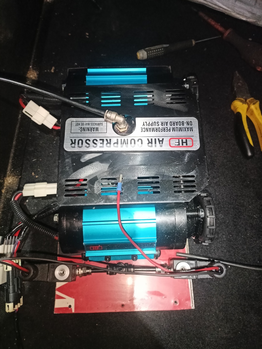 Интересный вариант для установки в пневмосистему. Но есть нюанс - клеммы из мягкой жестянки (обжатые провода вываливаются из клемм (клеммы с компрессоров до внутренней разводки). Постоянно работающий вентилятор охлаждения (который слышно даже при скрытой установке компрессора в задней части автомобиля) непонятное решение (включение по температуре было бы логичнее). Проводка идущая в комплекте (для подключения компрессора), сделано все по уму, но она короткая, если только компрессор не размещается под капотом (но тогда постоянно работающий вентилятор совсем не катит).