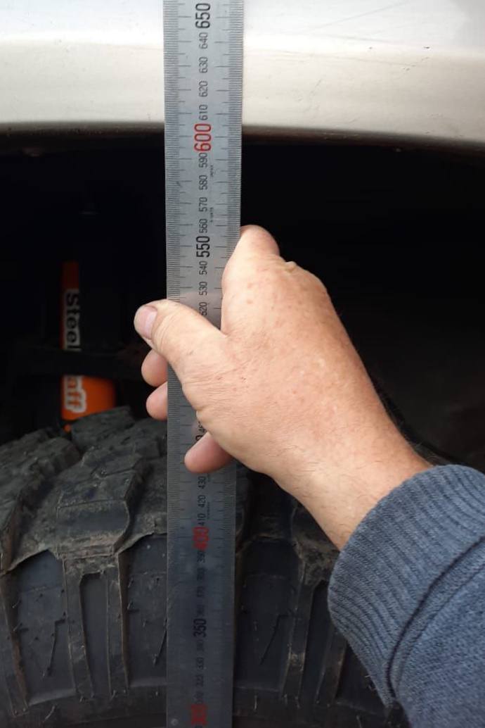 Замеры после установки: перед от центра колеса до арки ~605мм, задняя часть ~615мм.